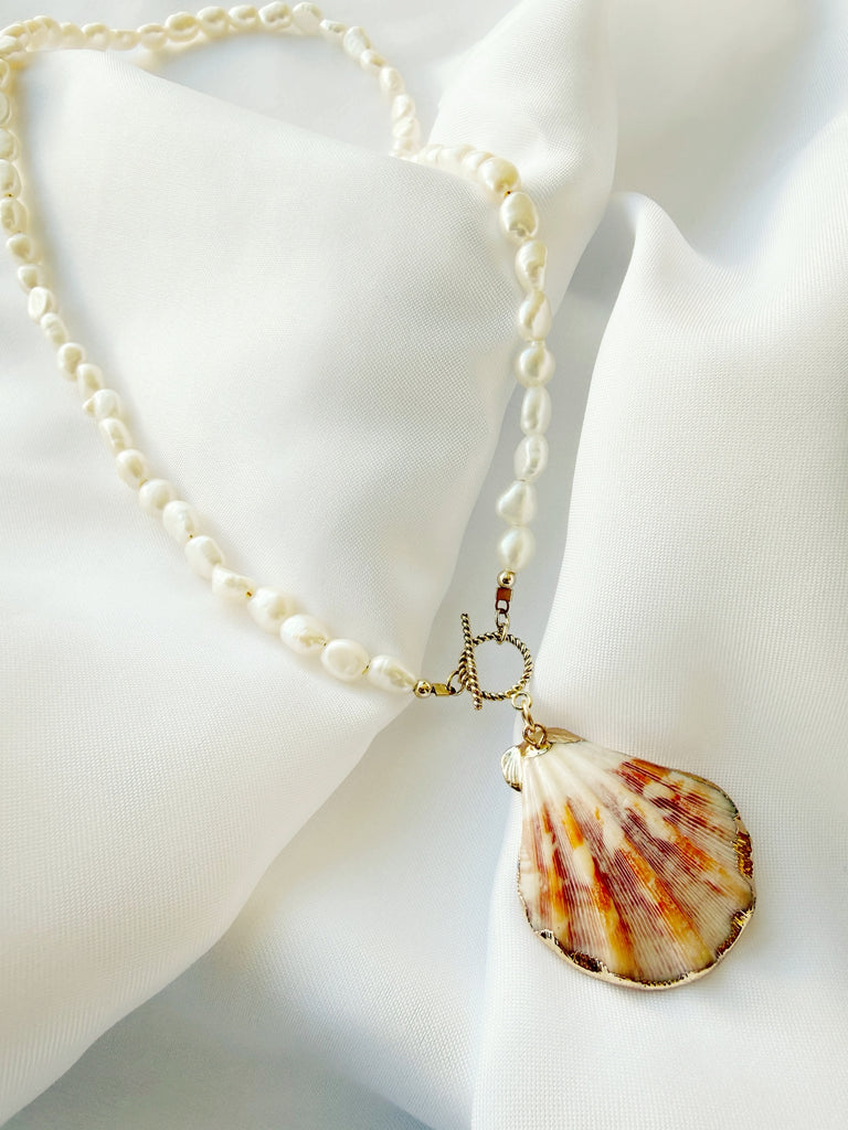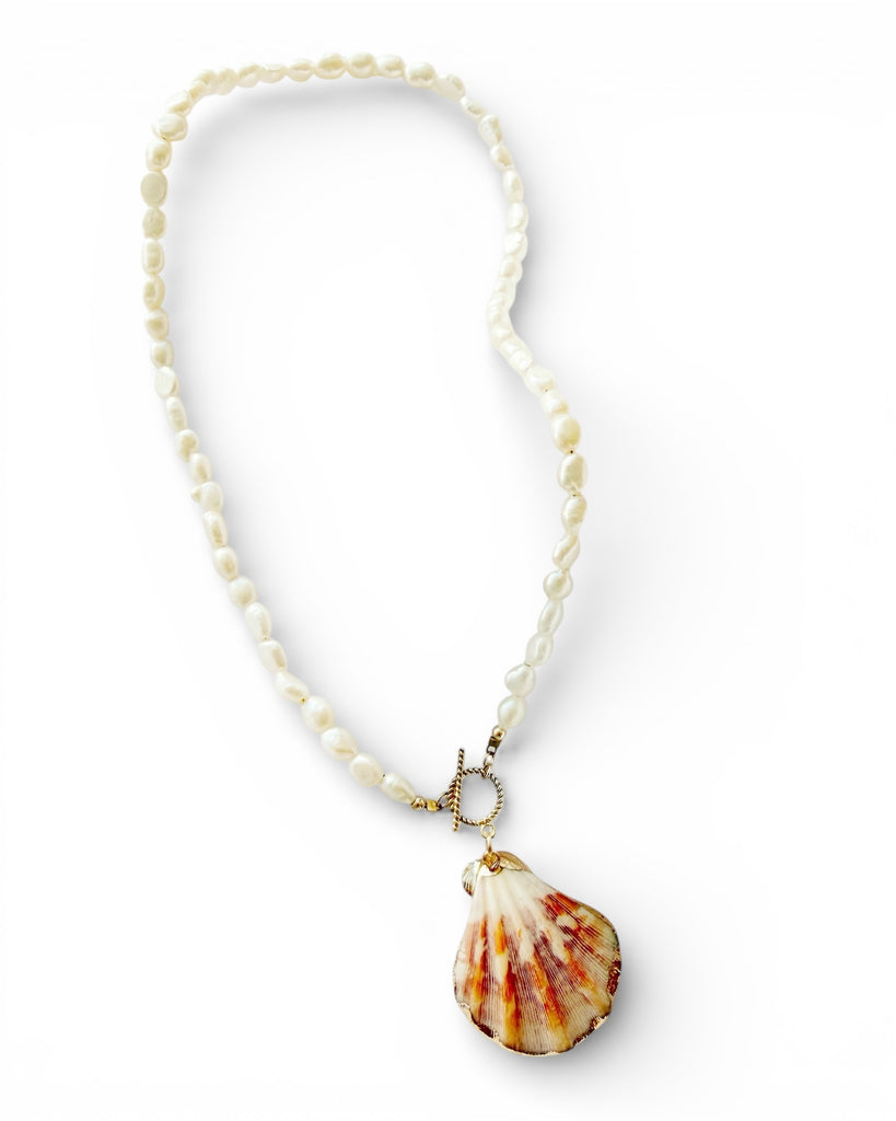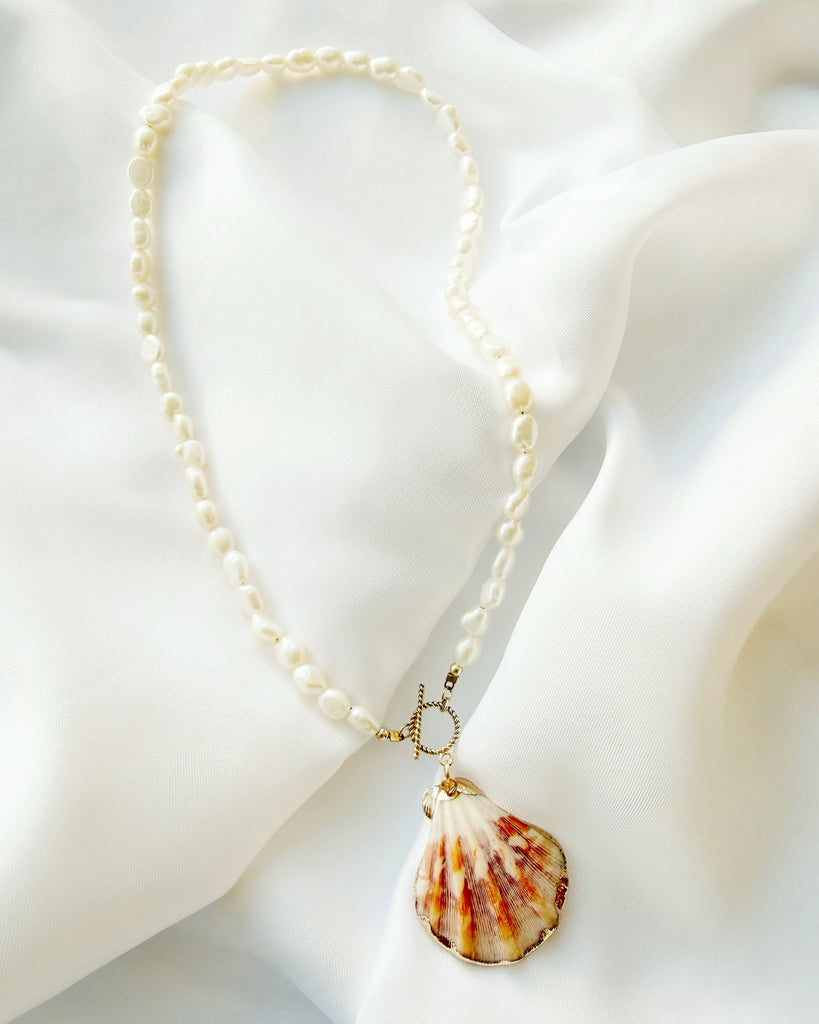 Genuine baroque freshwater pearls, gold dipped scallop shell & toggle clasp.
