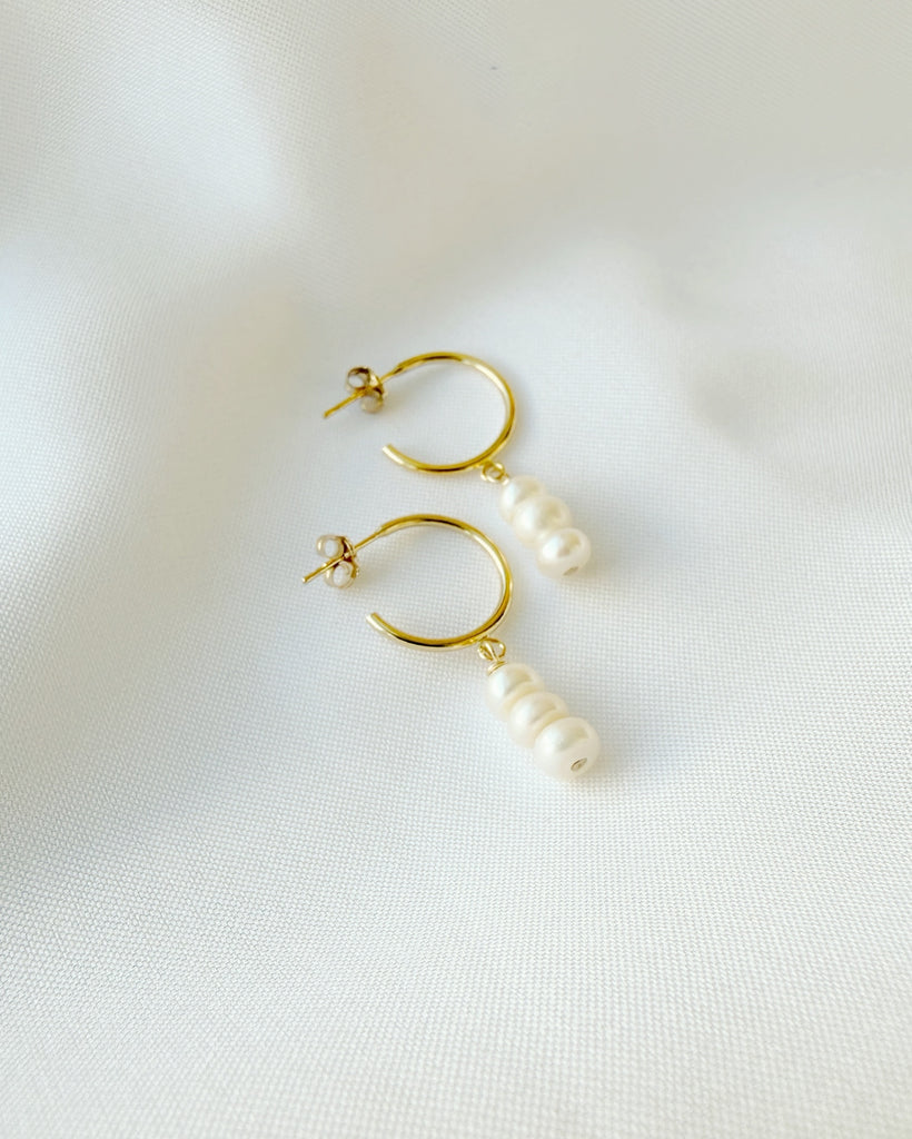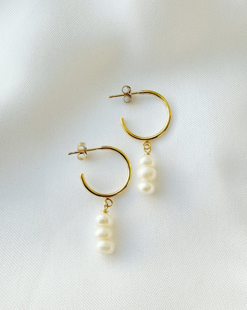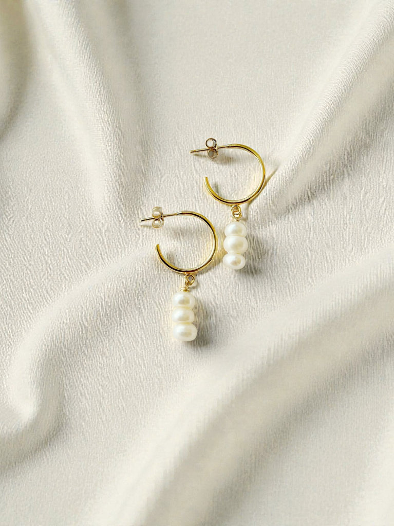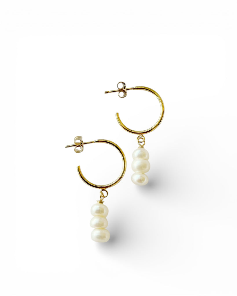 High quality 14k gold-filled and AA genuine freshwater button pearl hoops. Lightweight.