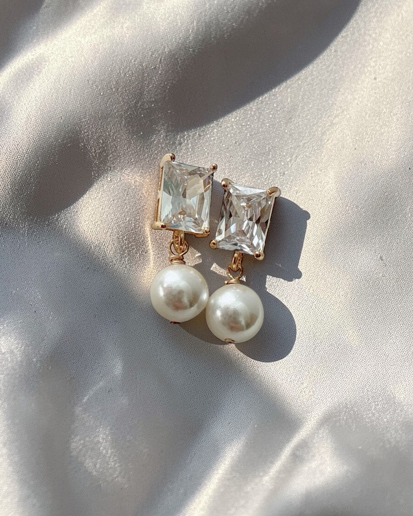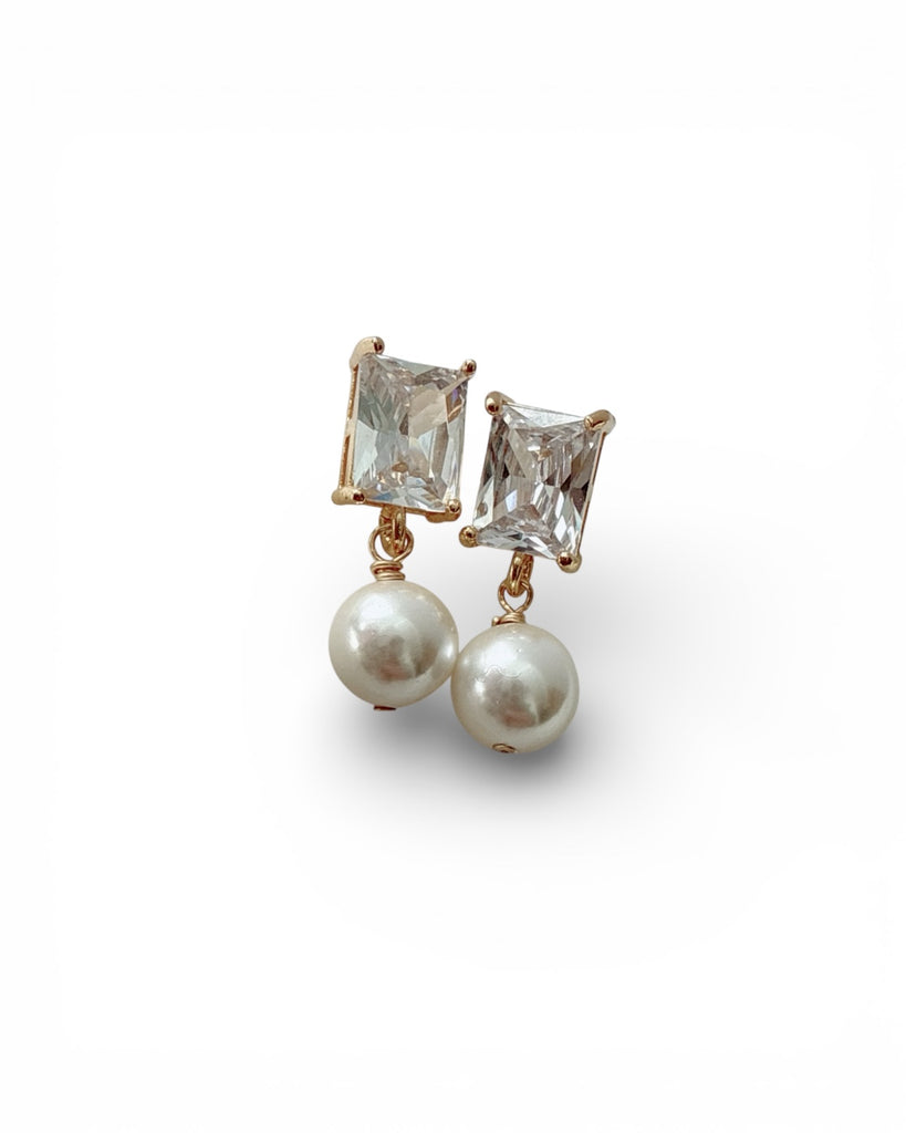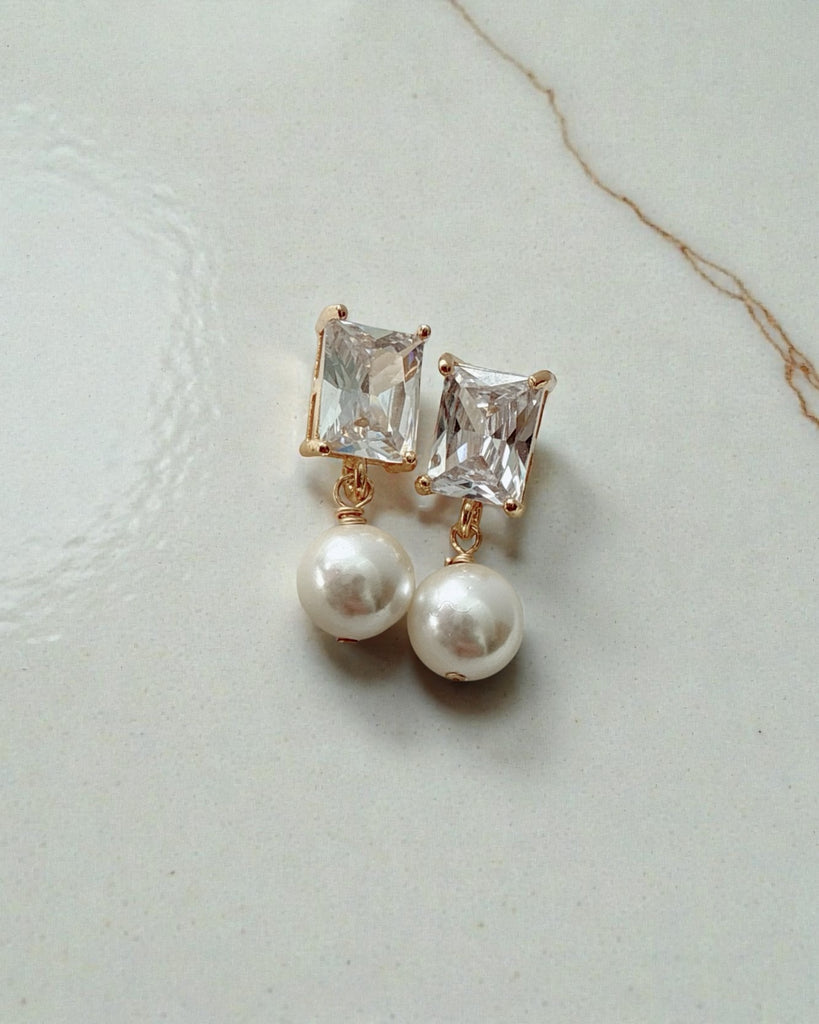 High quality 14k gold-filled baguette earrings and genuine freshwater pearls. Lightweight.