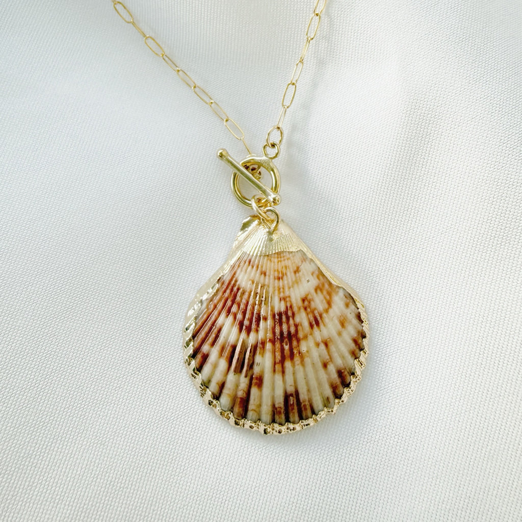 High quality 14k gold-filled chain, gold dipped genuine shell & toggle clasp.