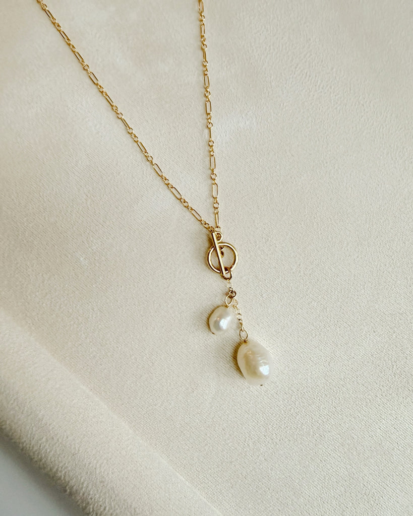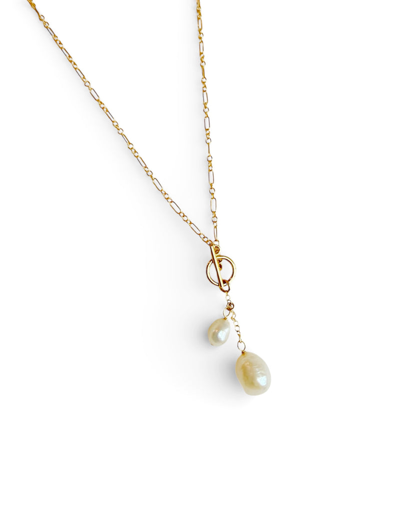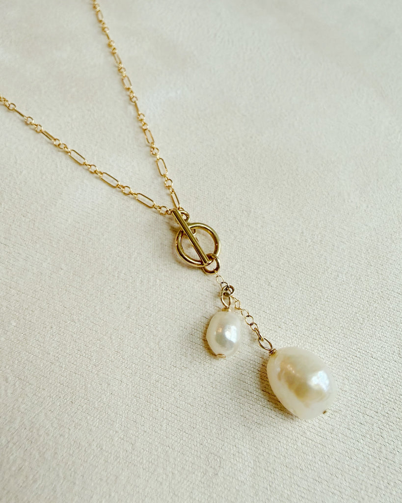 High quality 14k gold-filled chain, genuine freshwater pearls & toggle clasp.