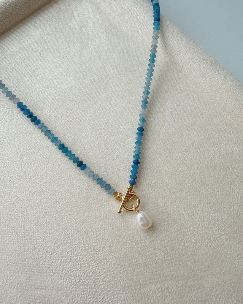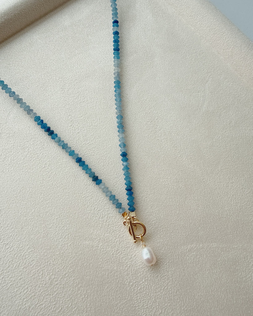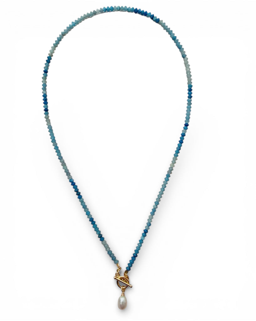 Genuine blue adventurine, freshwater pearl & toggle clasp.