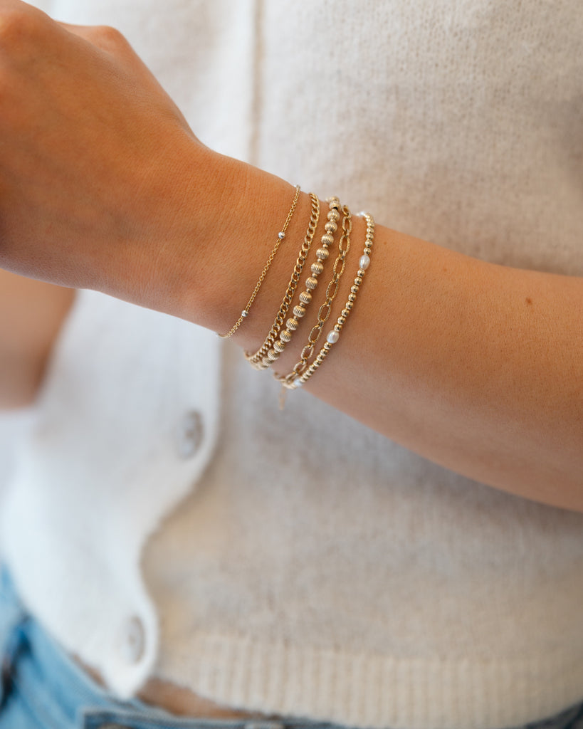 - Genuine freshwater pearls and 3mm gold beads